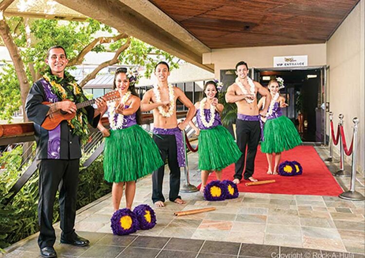 VIP待遇で楽しむワイキキルアウビュッフェ& ショー!楽しい夜を オーキッドレイ、マイタイ、プレミアムドリンク2杯と新設屋外ハワイアンパビリオンの 優先席で始めよう。 ディナー後は750席のロイヤルハワイアンシアターで繰り広げられるワイキキ最大のショー”ロック・ア・フラ®”に、VIP席で魅了される ご準備を。